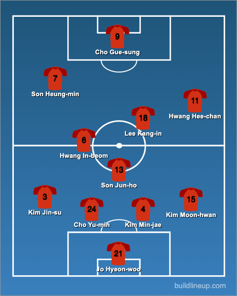 • Central Midfielders: Jung Woo-young, Son Jun-ho, Hwang In-beom, Paik Seung-ho, Jeong Woo-yeong