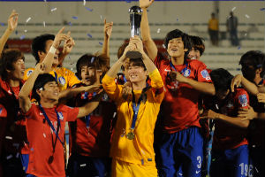 No shortage of drama as the U-19 Taeguk Warriors defeated Iraq in the final match of the AFC U19 Championship in the United Arab Emirates on Saturday. They were down 1-0 for most of the match to a surprisingly deft Iraqi side, hungry for a tournament win. As Iraq was preparing a grand celebration, with only seconds left in stoppage time Moon Chang-Jin made the most of a lob from substitute Oh Yeong-Jun and blasted it past the Iraqi keeper to force overtime. 30 minutes of heart stopping overtime featuring some entertaining dynamic football from both sides, it all came down to penalty kicks.