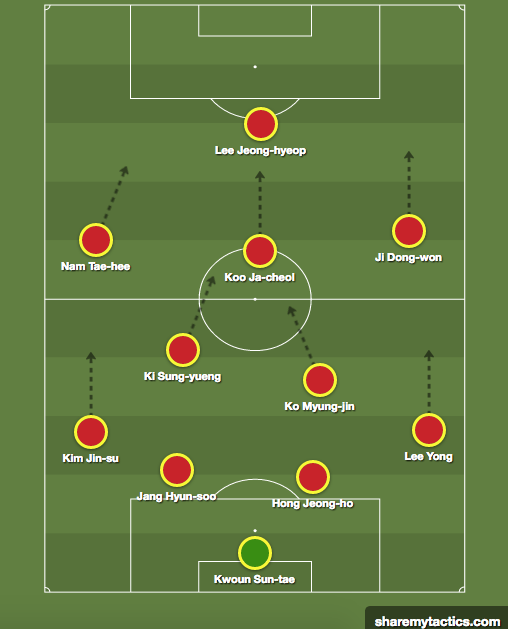 In this lineup, pretty much every player played one of their poorest games for the NT. Lee JH and Ko Myungjin actually did nothing; JDW missed some shots on target, and the entire defense just could not get it together.