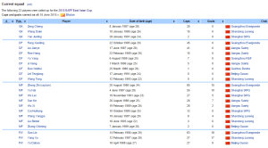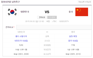 The Chinese National team is made up of players who all play in the national league (Chinese Super League). While the South Korea team is quite diverse, the players are from the Chinese Super League, Korean League and the Japanese League. South Korea will be also featuring a young team with the average age being 24.5 years.