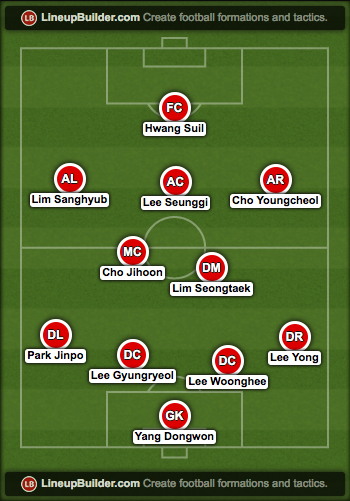 My assumptions here are 1) Hwang Jin Sung, Jung Sun Ho, Jee Jong Won will all be rotated in the 2 CM positions; it’s possible that Hwang Jin Sung will start more than I expect but I’m going off of last year’s CM pair here 2) Yoo Chang Hyun will slot into the starting XI in Nam Jun Jae’s absence 3) Kim Dong Jun wins the GK battle over Jeon Sang Wook and 4) Lim Chae Min is fit again.