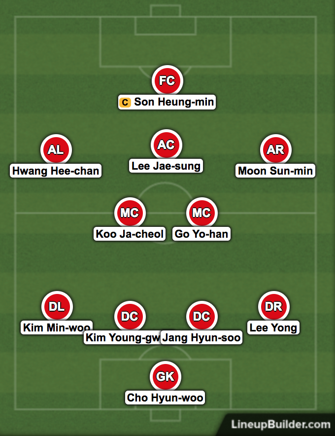In midfield, Koo Ja-cheol undoubtedly deserves to start, considering his experience in the side as well as his time in Germany. He’d share most of the offensive responsibilities with the more nimble Lee Jae-sung.