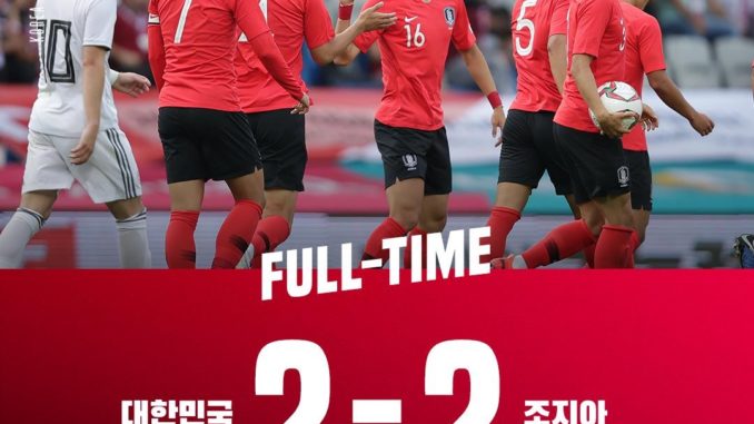 In the 85th minute, Hwang Ui Jo scored a header that was set up by Kim Jinsu and Lee Donggyeon. Finally, Korea looked to stablize and take control of the game, but 6 minutes later Georgia wins the ball once again in our half of the field and scores an equalizer. Georgia’s first goal was probably offsides, but their second goal was 100% offsides, but the line judge somehow missed it. Game ends with two goal a piece.