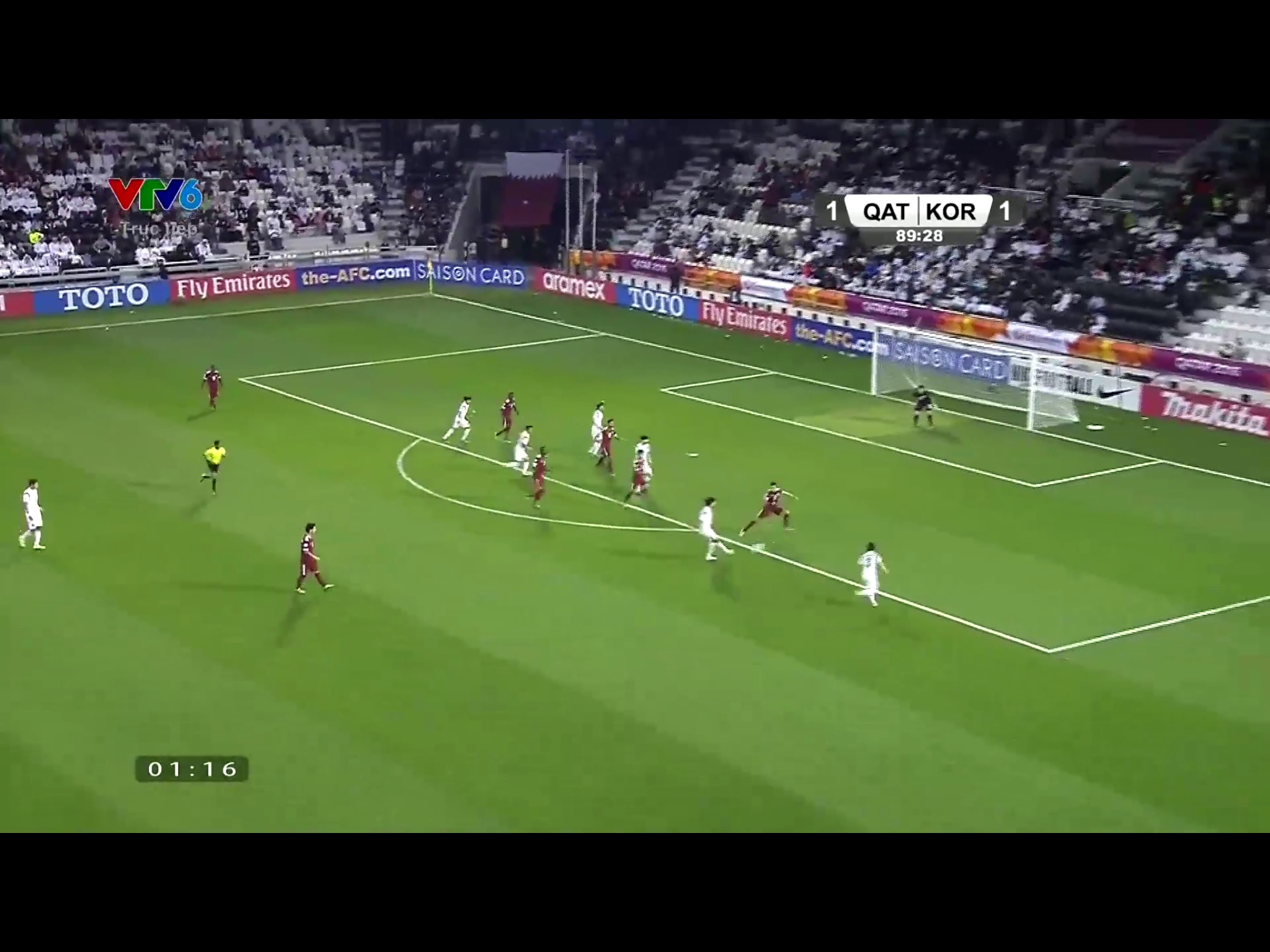 Korea made their final formation switch of the game, moving to a 4-4-2 diamond. They were a tad less assured defensively because of the formation switch but Qatar hadn’t really threatened with a serious chance until they scored in the 80th minute. Abdelkarim Hassan hit a blistering cross that went through the box and came out the other side to rightback Musaid.