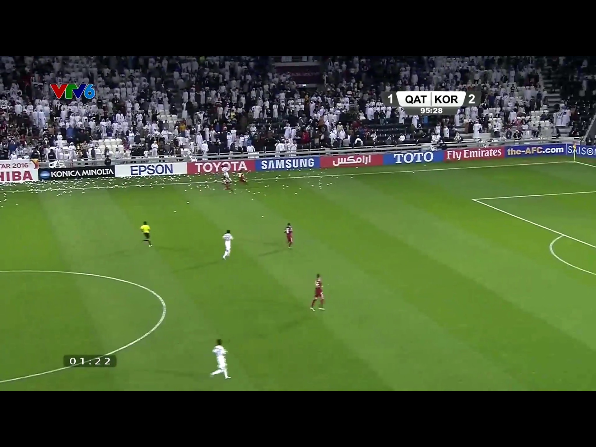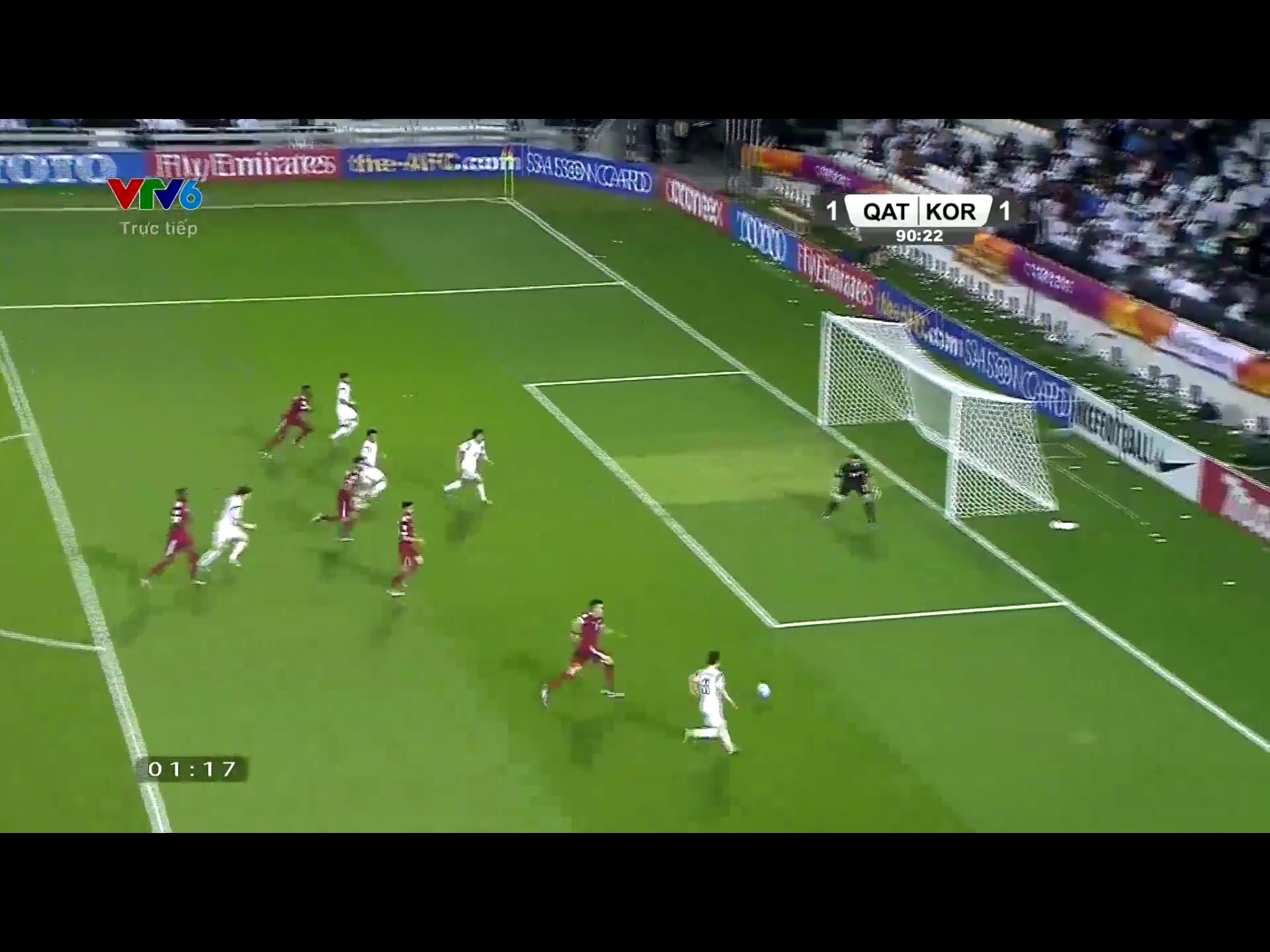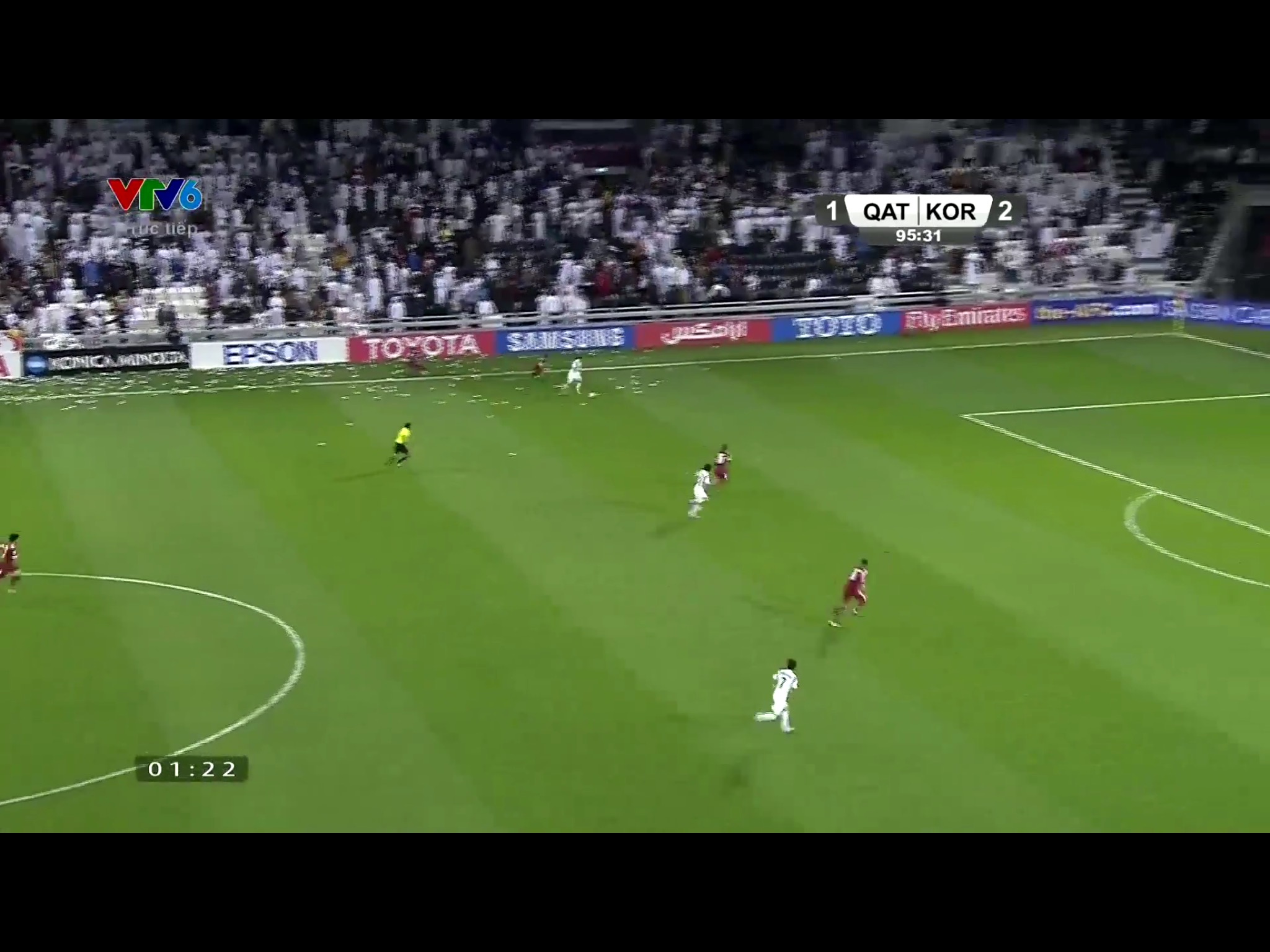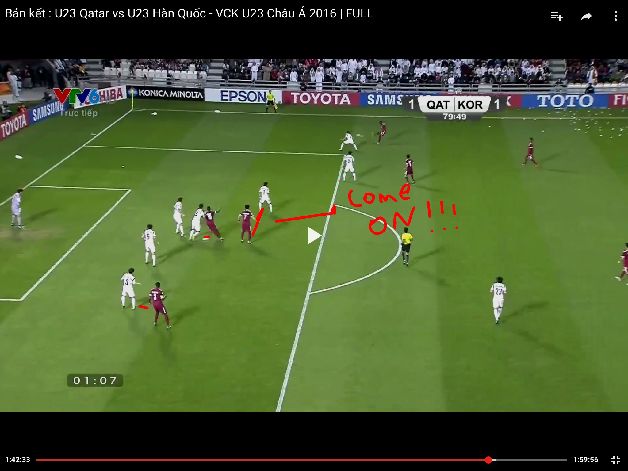 After Afif manages to run aimlessly into the heart of the Korean defence twice in less than 30 seconds, and Abdelkarim Hassan decides that as captain, the best thing to do in this situation is to go for glory from like 35 yards with no shooting angle whatsoever, Korea get the winning goal.