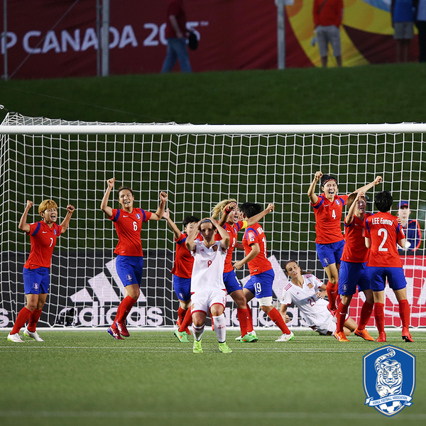OFF THE BAR! KOREA ARE THROUGH! KOREA ARE THROUGH! KOREA ARE THROUGH! #KOR 2-1 #ESP #FIFAWWC