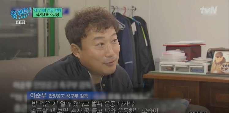 Cho Gue-sung’s high school coach, Lee Soon-woo. Screenshot from You Quiz.
