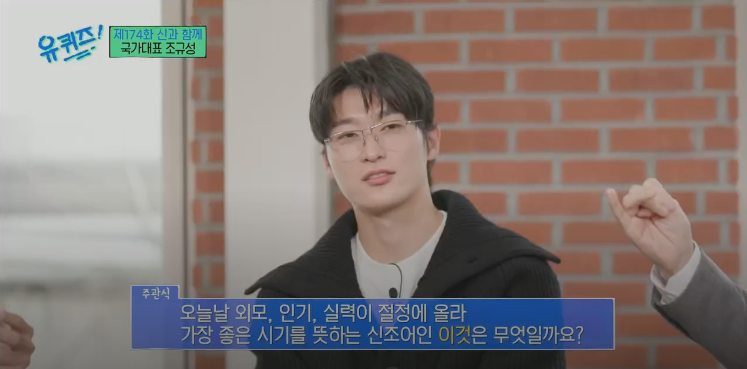 Cho Gue-sung tries to answer the quiz question. Screenshot from You Quiz.