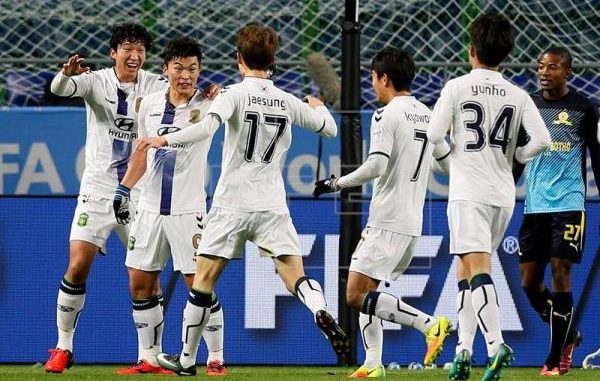 Moving on – Not much to say about today’s win, but it proved that the high octane performance against Club American wasn’t an illusion. Park Won-Jae cross eventually found Kim Bo-Kyung, rounding the defense and keeper, opened up the game with a scintillating class goal that he rocketed into the near post corner. He followed that up by contributed to the 2nd goal, a very neat set piece practiced on the training grounds with multiple moving parts: Kimbo took the free kick, he opted to go short to a mobile Lee Jae-Sung cutting across the 18 yard box toward Kimbo. Lee Jae-Sung clinically flicked it to Ko Moo-Yeol streaking down the left. The South African defense was distracted by Lee Jae-Sung’s run, then scrambled to deal with Ko, allowing space for Ko to cross. Mamelodi couldn’t cleanly get it out of danger –Lee Jong-Ho emerged in the chaos, and with his back to the goal, reflexively turned and shoot for a brilliant 2nd Jeonbuk goal. Demoralized, Jang Yun’s low cross was misplayed by Brazilian defender Nascimento, who knocked it into his own net. Jeonbuk subbed in the Wookie for a routine header from a Lee Jae-Sung corner kick into the net for a late 4th goal, not before a pretty spectacular consolation strike curled in by Tau.