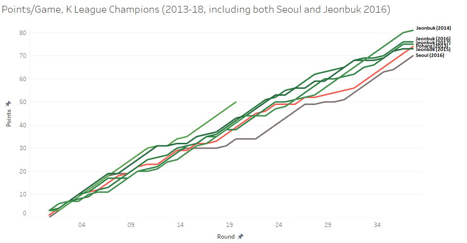 Trend lines are even suggesting that Jeonbuk could well be on their way to scoring in excess of 95 points at the end of this season at the current rate.