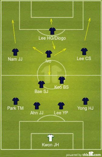 - Shut down Ivo – The Brazilian is a notch above the rest of his teammates in terms of quality, and keeping him quiet and off the ball helps prevent Incheon from pushing forward. Normally Ivo will operate in the 10 spot, but if he can’t get the ball there he’s comfortable dropping into a deeper midfield role. Playing some sort of flexible man-marking scheme would probably be effective in stifling Incheon’s attacks.