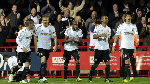 In Tuesday’s Cup match with League 1 side Crawley, Swansea started Ki in centerback. Unusual move, but Manager Michael Ladrup had few options with Neil Taylor out with a season ending injury, Kyle Bartley knocked out for 3 months, Ashley Williams with light injuries and Chico Flores finishing up his suspension. That is one banged up defense (Swansea picked up 26 year old Dwight Tiendalli recently to help out). So how’d he do in his new temporary role? While Swansea unconvincingly advances in the tournament, (Monk header in stoppage time to win 3-2), Ki played the full 90 minutes and according to the official Swansea website, “Ki was clearly enjoying his new role in the heart of the Swans defence as he spread some great early passes out from the back, much to the delight of the 1,000 Jacks behind Gerhard Tremmel’s goal.” The final verdict on Ki’s centerback performance, not bad, especially for someone who’s never played the postion. His distribution was spot on and he came out aggressively forward at times, switching it up as if deep midfielding again. Ki’s stock is rising amongst Swansea fans and is showing quality and versatility for the team. Yet another first in this new season for Koreans in top flight european football.