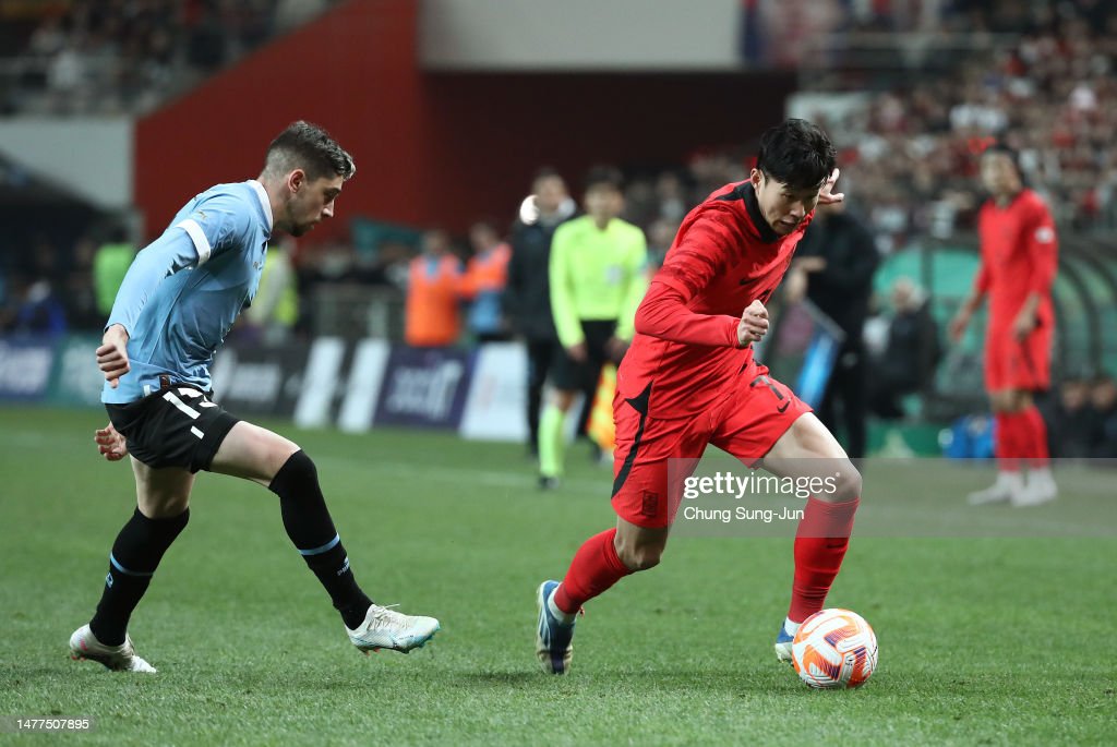 SEOUL, SOUTH KOREA – MARCH 28: Son Heung-min of South Korea controls the ball during the international friendly match between South Korea and Uruguay at Seoul World Cup Stadium on March 28, 2023 in Seoul, South Korea. (Photo by Chung Sung-Jun/Getty Images)