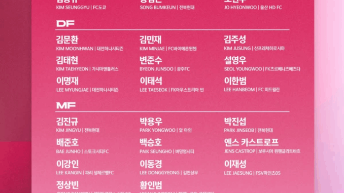 Korea Roster vs USA and Mexico: Jens Castrop’s First Call-Up
