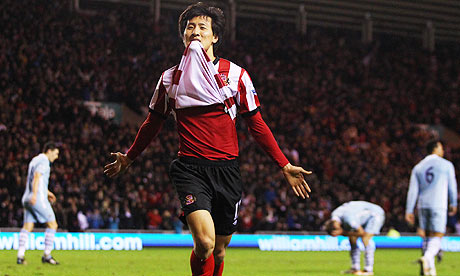 Happy (post) Festivus. Leading off, the Blue Dragon, the midfielder in Stoke City’s eye, the one and only Lee Chung-Yong netted Bolton’s 2nd goal against Birmingham in what would turn out to be a 3-1 decisive victory for the Wanderers. It was a brilliant strike, Lee ended up rounding the keeper and got in the shot at a tight angle. The eventual game winner, his 4th goal of the season comes in the wake of reports of Stoke City’s reported interest in the South Korean international. A possible £8 January transfer is under negotiations. Here’s a quick video summary: