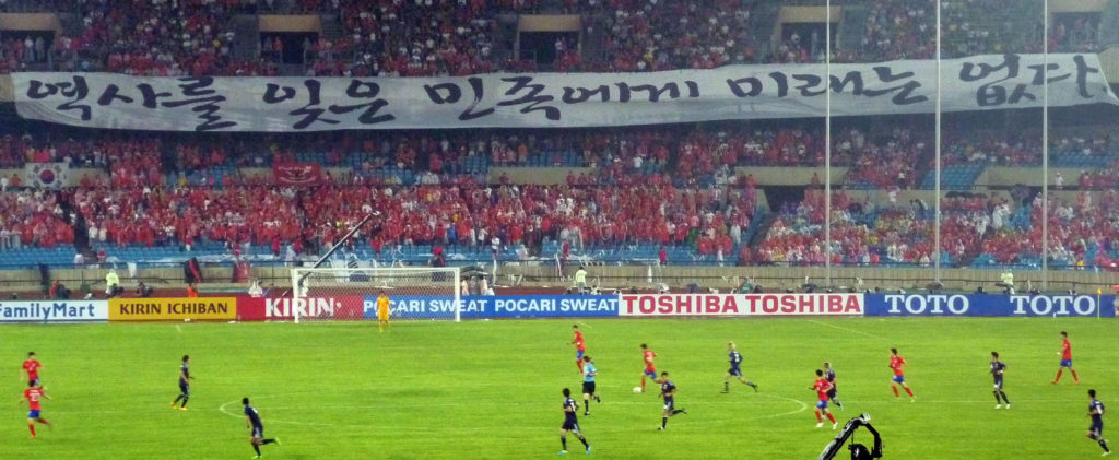 Football diplomacy was supposed to cool the tensions between the two nations in the post-World Cup era, and though at times, relations between the two countries have improved, the last 15 years in cross East Sea relations have signaled that there is very little the World Cup did to bring both nations together. Korea’s perennial litany of complaints (though I consider them to be astutely valid) concerning comfort women, the Dokdo Islands, and Japanese politicians’ visits to the Yasukuni Shrine (which honors Japanese war veterans, including some alleged war criminals) continue to go in one ear and out the other of Japanese politicians.