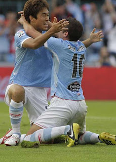 PCY celebrates after scoring the game winning goal v Getafe. Photo / Santiago Perez