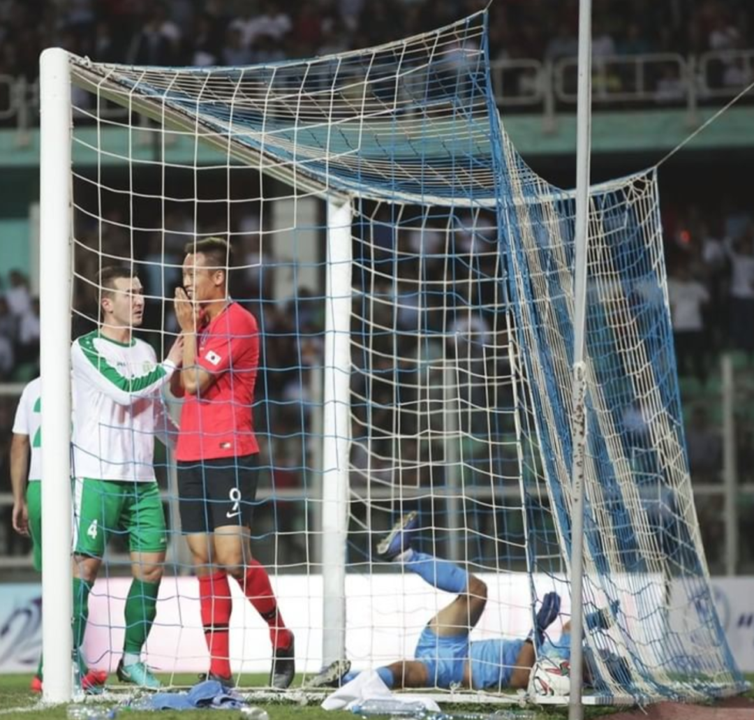 We actually scored another goal too, but it was ruled out for a foul after Kim Shin-wook completely bodied the Turkmen goalkeeper. At least the referee is fair in not booking him considering how many challenges Turkmenistan had gotten away with.