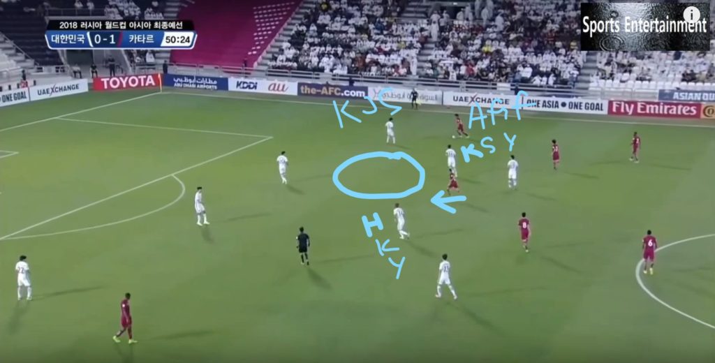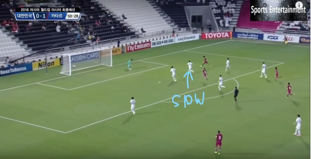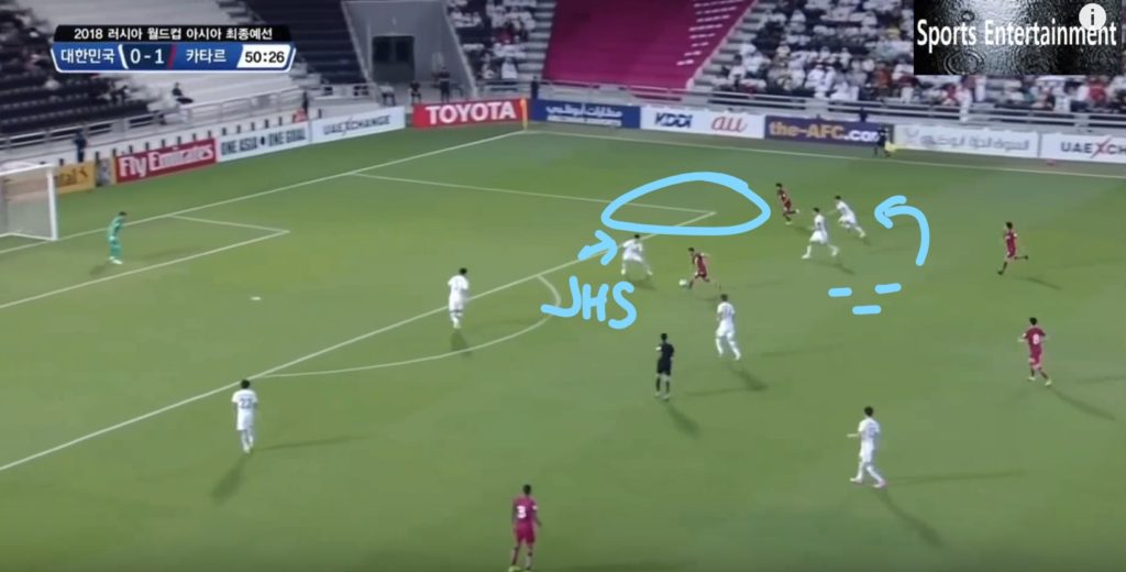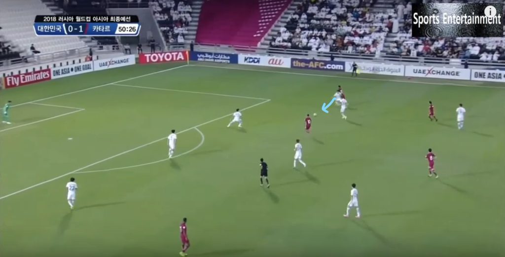 I think I jinxed it a little because Qatar scored just 5 minutes after Hwang Heechan – off of a throughball that caught Kwak Taehwi off-foot. This was almost as embarrassing as the Afif goal I highlighted in detail above: