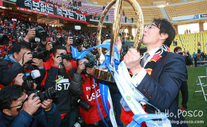 Five candidates for this award, and in 5th place was army team Sangju Sangmu (3% of the vote). The army team earned promotion back to the K League Classic this past year. In 4th place was the U-19 women’s team which won the AFC championship (6%). In 3rd place was FC Seoul, who were runner’s up in the AFC Champions League, but a 4th place domestic finish may have cost them with the voters. In 2nd place, with 25% of the vote, was Pohang Steelers. Pohang won the domestic double of K League Classic and KFA Cup. The 1st place winner though is . . .