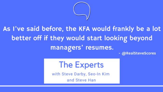 After positive reviews from the last session of The Experts (eat your heart out, Optus & Fox, we’ve got a functioning platform AND insightful pundits), joining us again to share their World Cup 2018 post-mortems for Korea and thoughts on the future of Korean football, are international manager Steve Darby, MLS youth product Seo-In Kim and reputed journalist Steve Han.