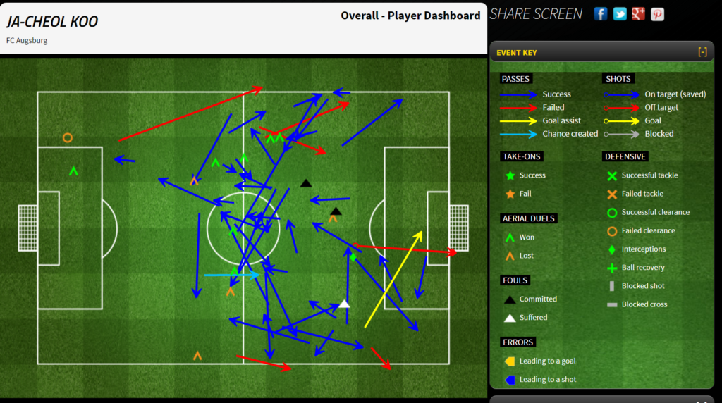 Koo was completely anonymous this past Friday, but that was an anomaly compared to his usual consistent self the rest of September. I only got to watch one Augsburg match in September, against Darmstadt, and he was solid. He notched an assist in this one: