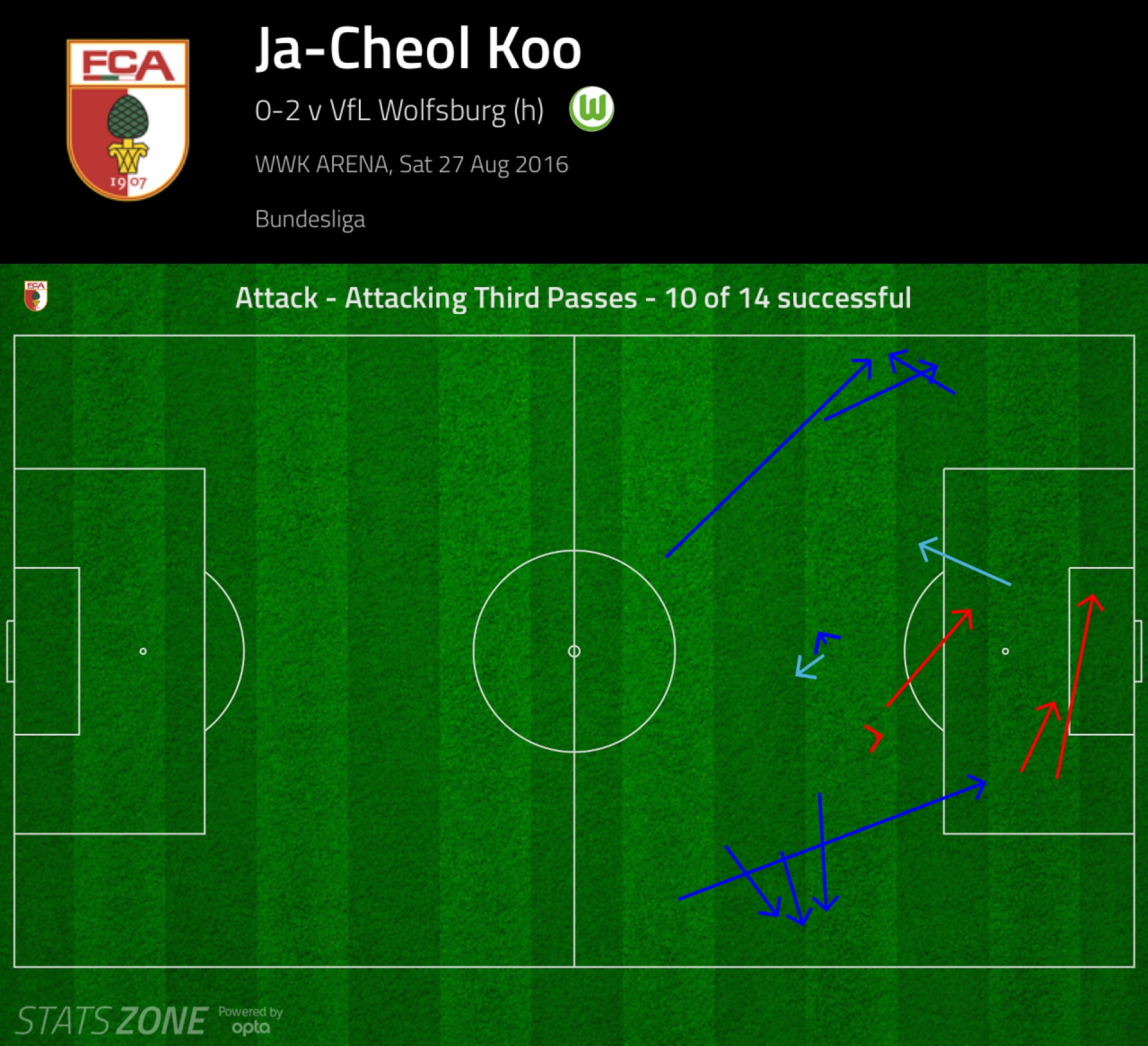Blue passes were completed, red passes weren’t. Light blue is a “chance created”.